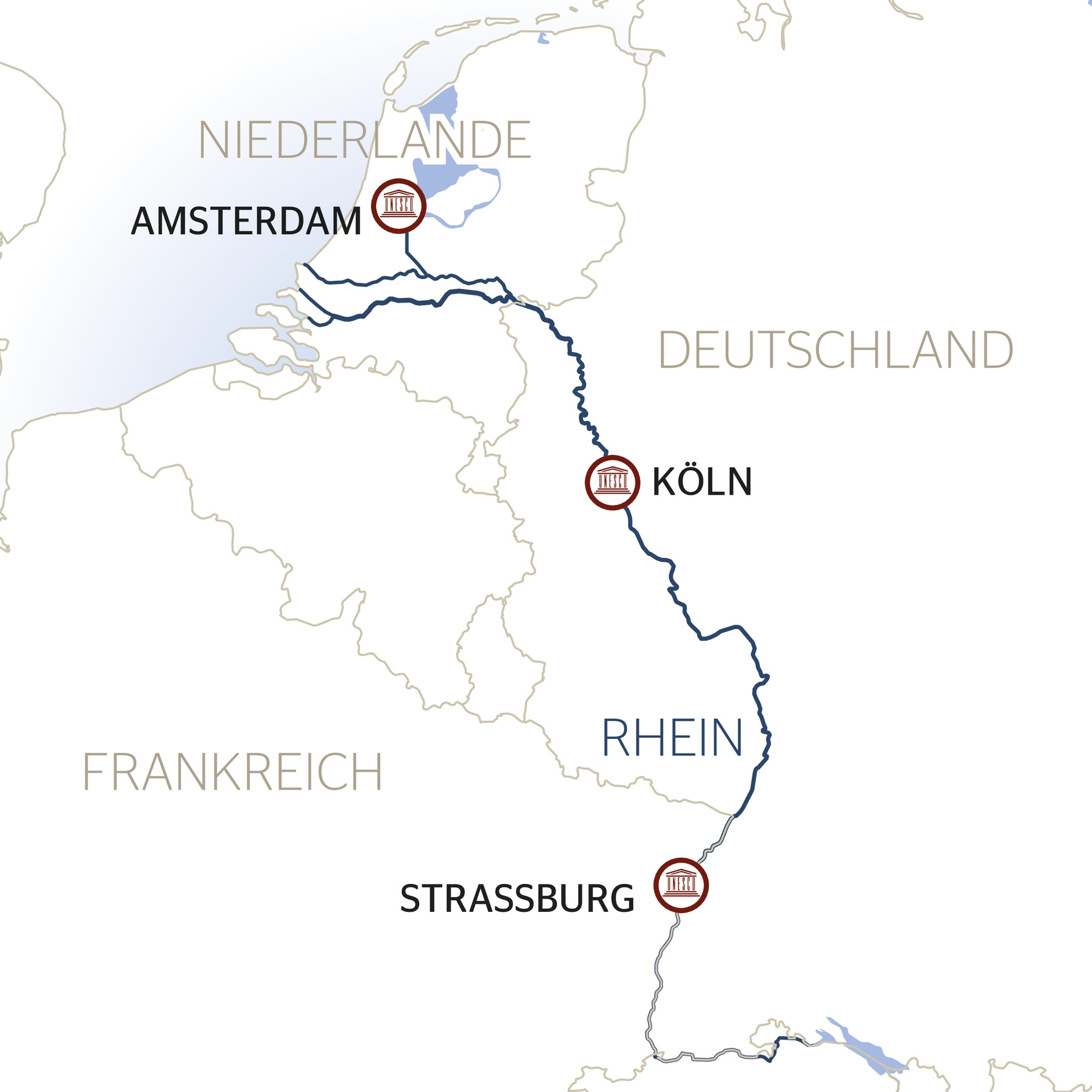 Genießen Sie eine Kreuzfahrt von Strasbourg nach Amsterdam zu einer ganz besonderen Zeit. Tauchen Sie ein in den Weihnachtszauber entlang des sagenumwobenen Rheins. Besuchen Sie an Heiligabend die Christmette im Kölner Dom, erkunden Sie Volendam am Ijsselmeer und erleben Amsterdam bei einer Grachtenrundfahrt.