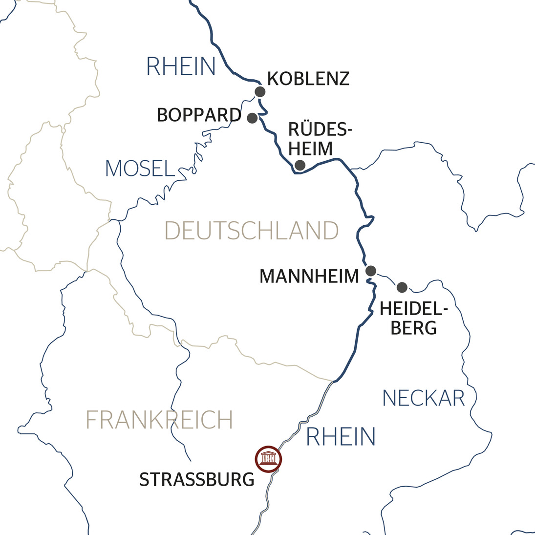 Individuelle Anreise nach Strasbourg. Am frühen Abend gehen Sie an Bord der MS Gérard Schmitter. Nach dem Kabinenbezug lernen Sie bei dem Willkommensempfang die Besatzung kennen und nehmen danach im Schiffsrestaurant Platz zu Ihrem ersten Abendessen an Bord. Währenddessen lichtet Ihr Schiff zum ersten Mal den Anker und nimmt Kurs auf Boppard.