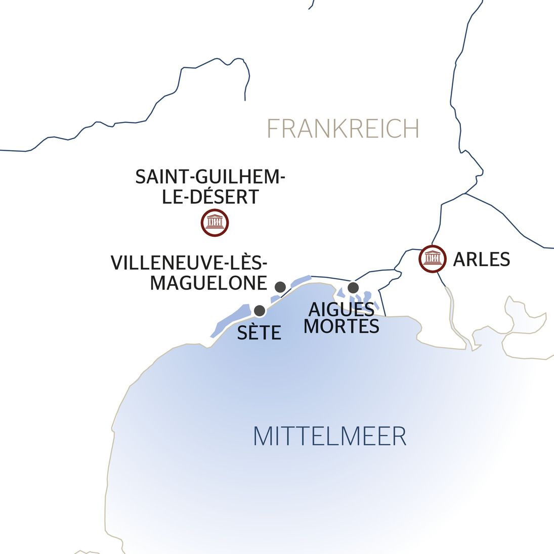 HINWEIS: Sie haben die Möglichkeit, einen Bustransfer von Arles nach Sète zu buchen - bitte sprechen Sie uns an!