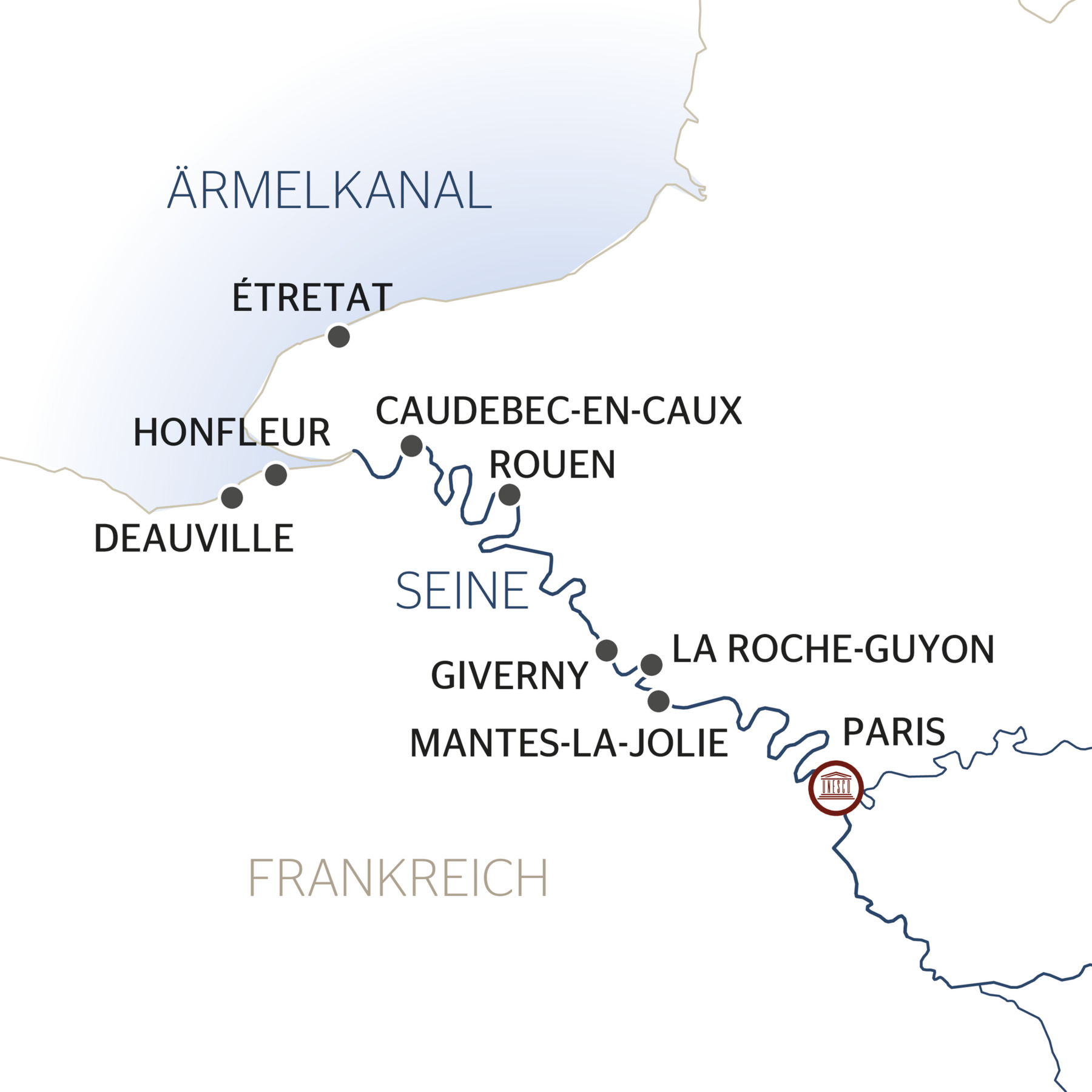 Ihre unvergessliche Flusskreuzfahrt an Bord der MS Botticelli beginnt in Honfleur, einem charmanten Küstenort an der Mündung der Seine in den Ärmelkanal. Von hier aus kreuzen Sie durch die wunderschöne Normandie. Ihr schwimmendes Hotel bringt Sie entlang der Seine zu einigen der faszinierendsten Orte der Region. Während Ihrer Reise werden Sie nicht nur die historischen Städte und malerischen Landschaften entlang des Flusses entdecken, sondern auch einige der berühmtesten Sehenswürdigkeiten und versteckten Juwelen der Normandie erkunden. Von den exquisiten Stränden von Deauville bis zu den imposanten Kreidefelsen von Étretat, von den mittelalterlichen Gassen von Rouen bis zu den inspirierenden Gärten von Giverny.