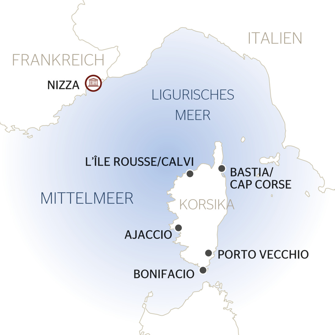 Nizza - Ajaccio - Bonifacio - Porto-Vecchio - Bastia - L’Île-Rousse - Nizza