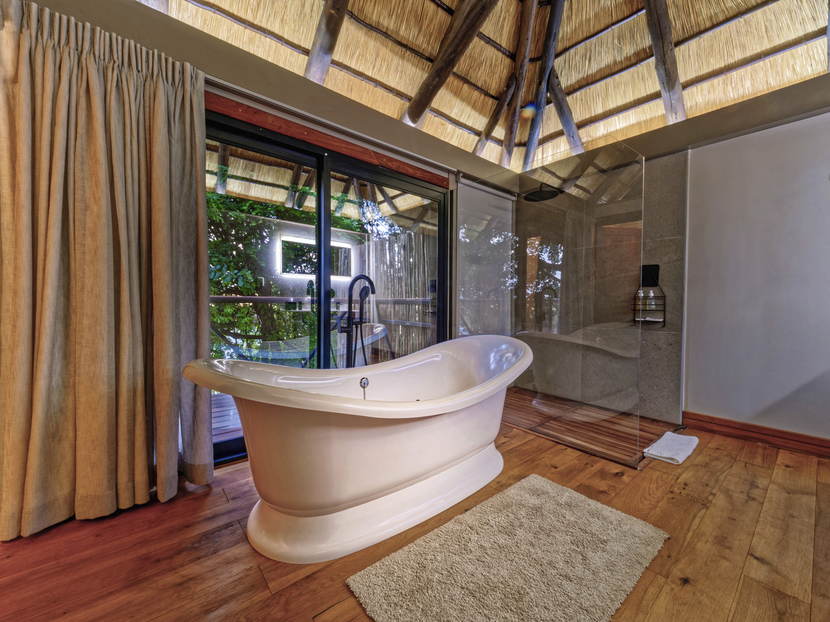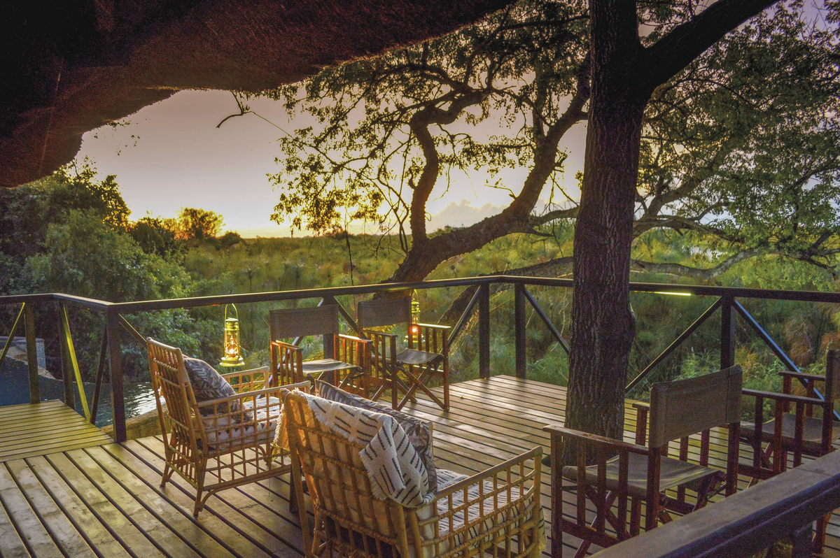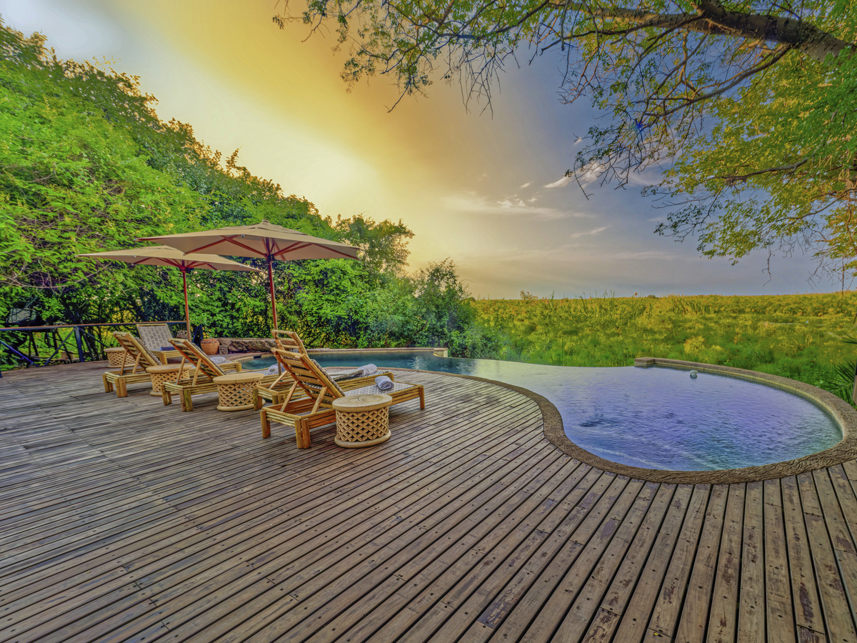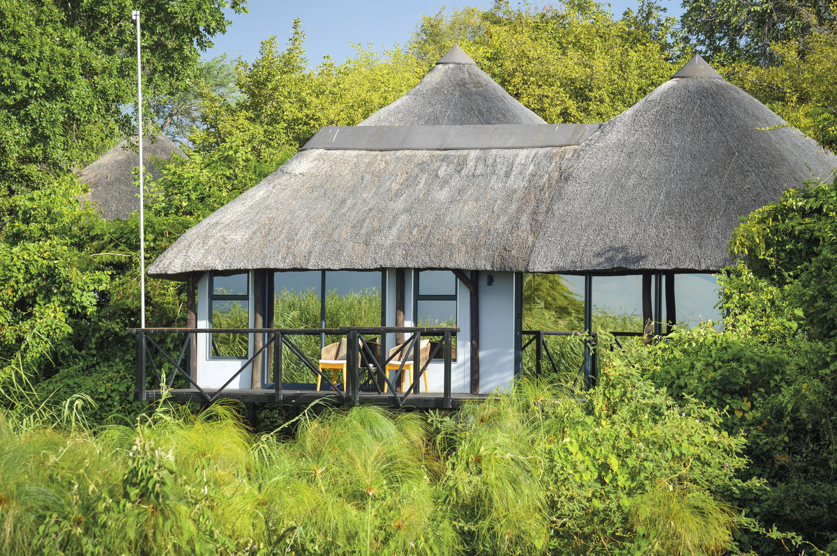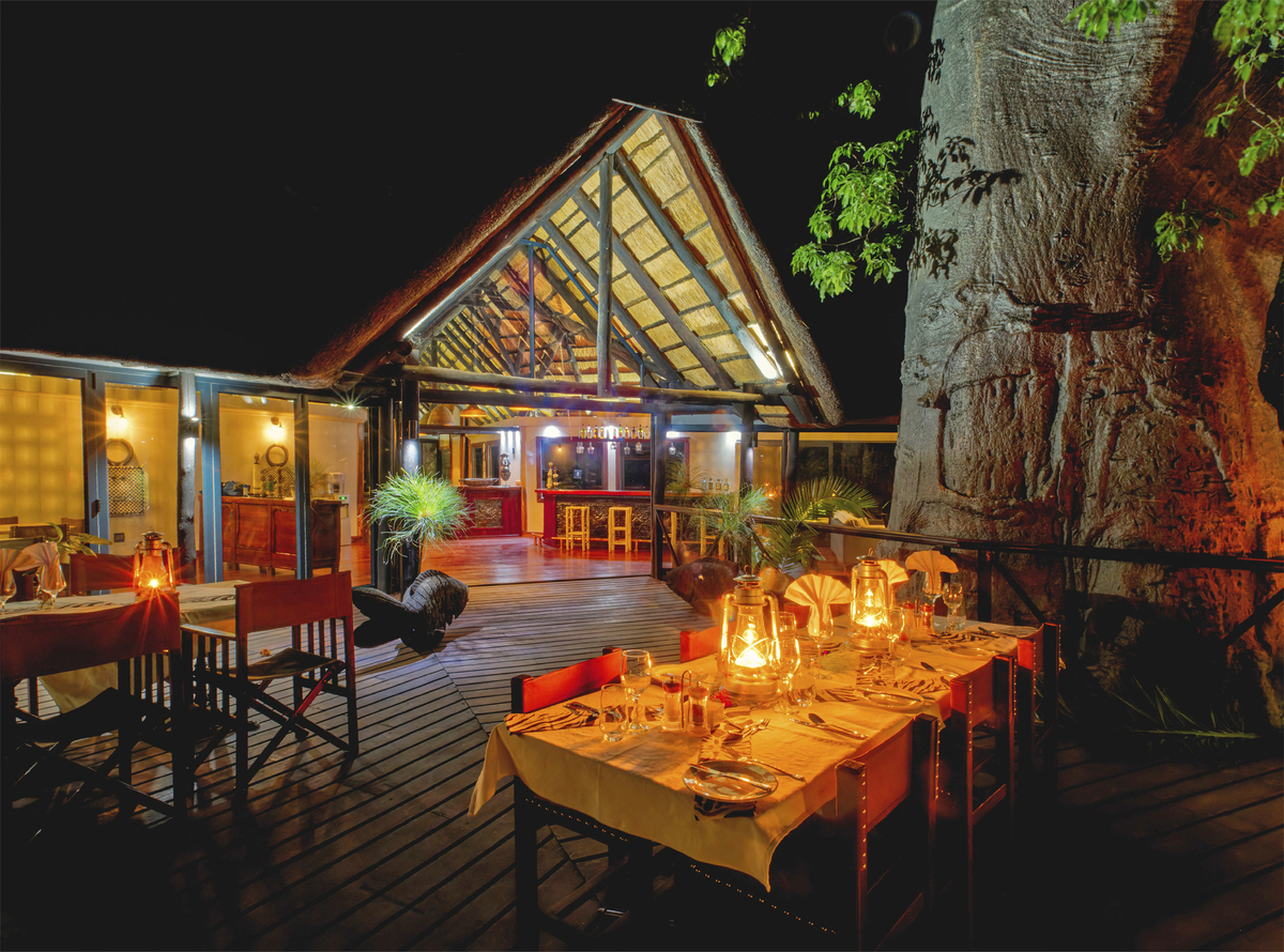Die luxuriöse Kaza Safari Lodge, die komplett neu gestaltet wurde, befindet sich an einem außergewöhnlich schönen Ort. Die 8 Bungalows mit Strohdächern verfügen über eine große Terrasse, einen privaten Pool und eine atemberaubende Aussicht auf das Flussufer und die Savanne. Sie sind so eingerichtet, dass sie ein authentisches, modernes und elegantes Ambiente mit dem größten Komfort bieten. Sie befinden sich in und unter den Ästen eines riesigen, 700 Jahre alten Affenbrotbaums. Die Legende besagt, dass der Abenteurer und Entdecker Livingstone hier sein Lager aufgeschlagen hat.