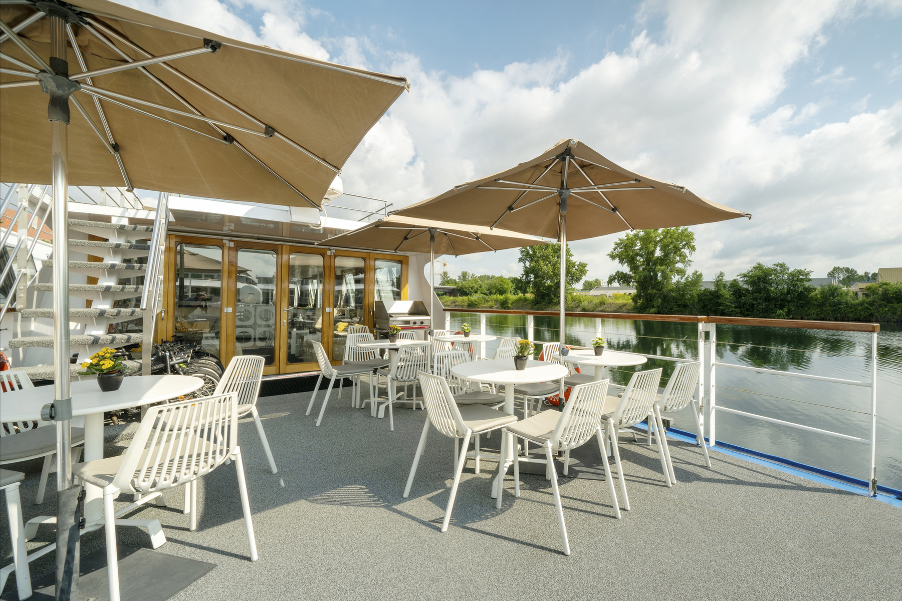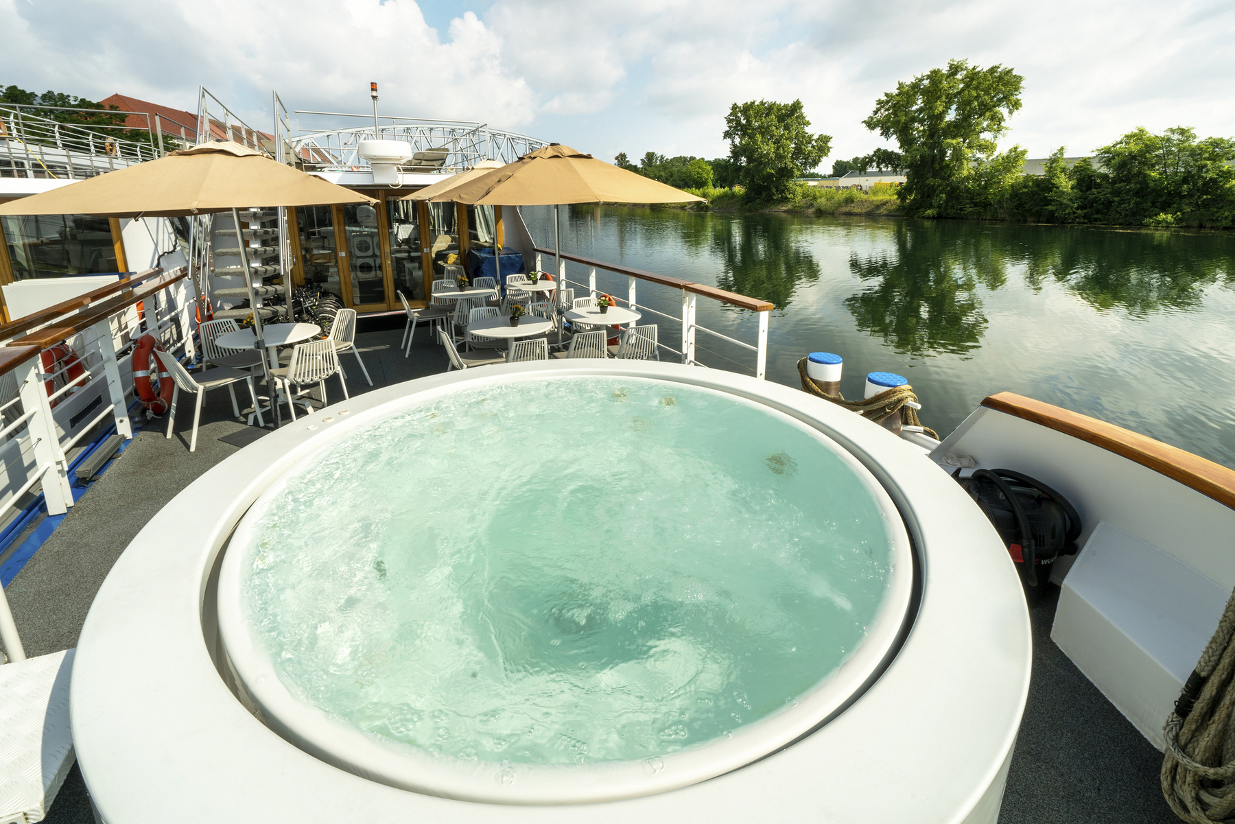 An Bord ist alles bis ins kleinste Detail durchdacht und die Besatzung garantiert einen persönlichen Service. Die Dekoration schafft eine besonders weiche und einladende Atmosphäre. Auf dem Oberdeck befinden sich das Restaurant, das eine delikate Küche in einem raffinierten Rahmen anbietet, die Lounge-Bar und ein Entspannungsbereich mit Jacuzzi. Auf dem Sonnendeck stehen bequeme Liegestühle zur Verfügung, der ideale Ort, um sich zu entspannen und die umliegende Landschaft zu bewundern.