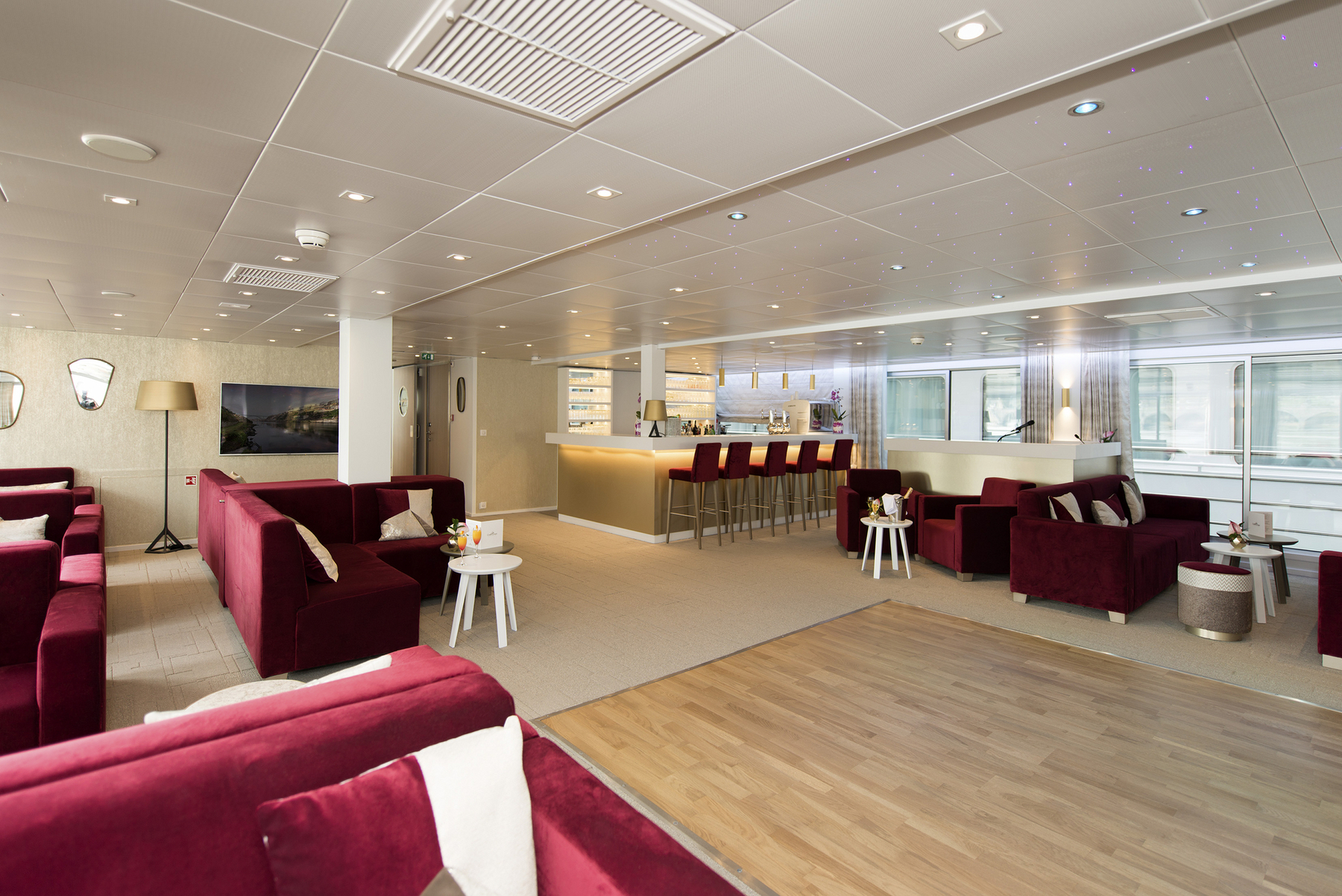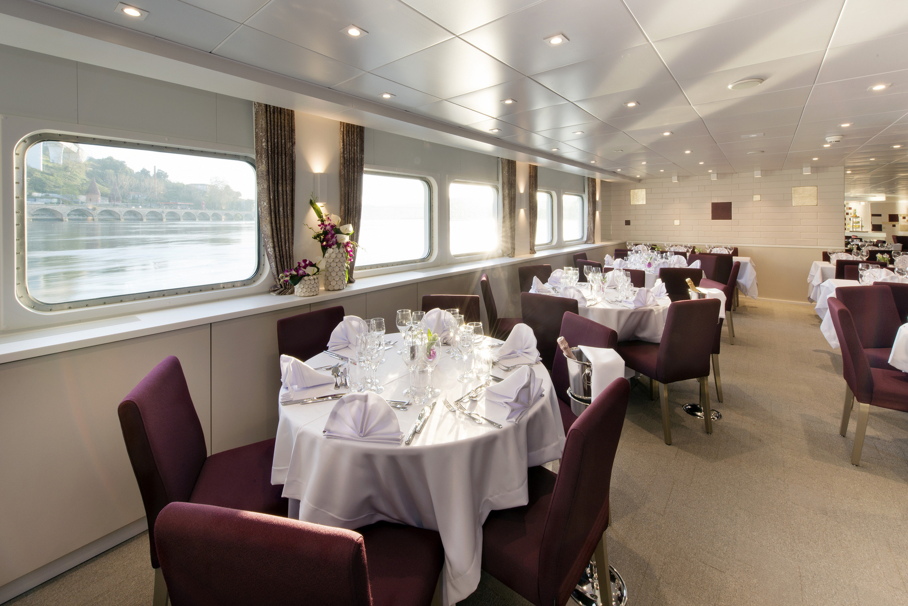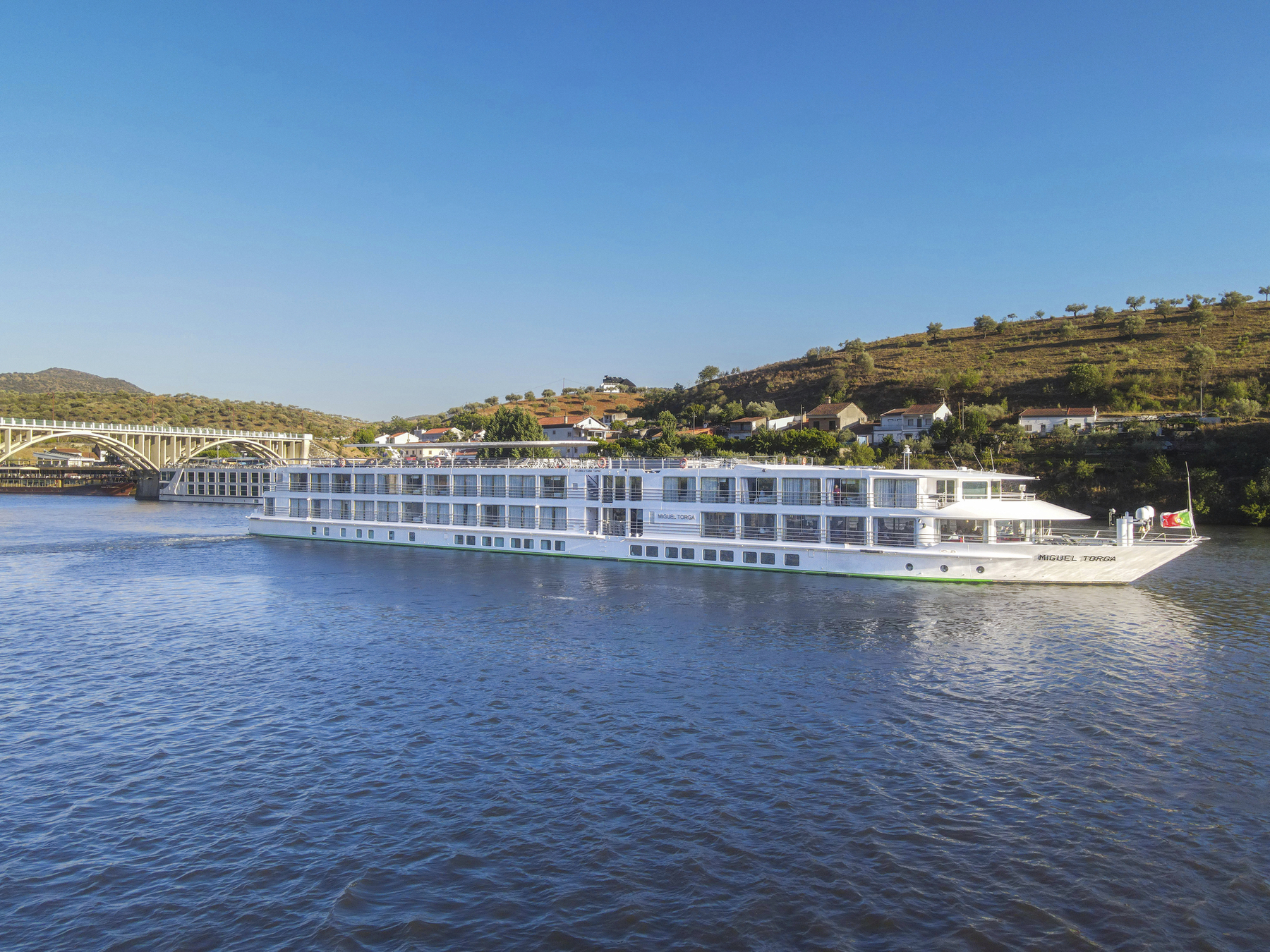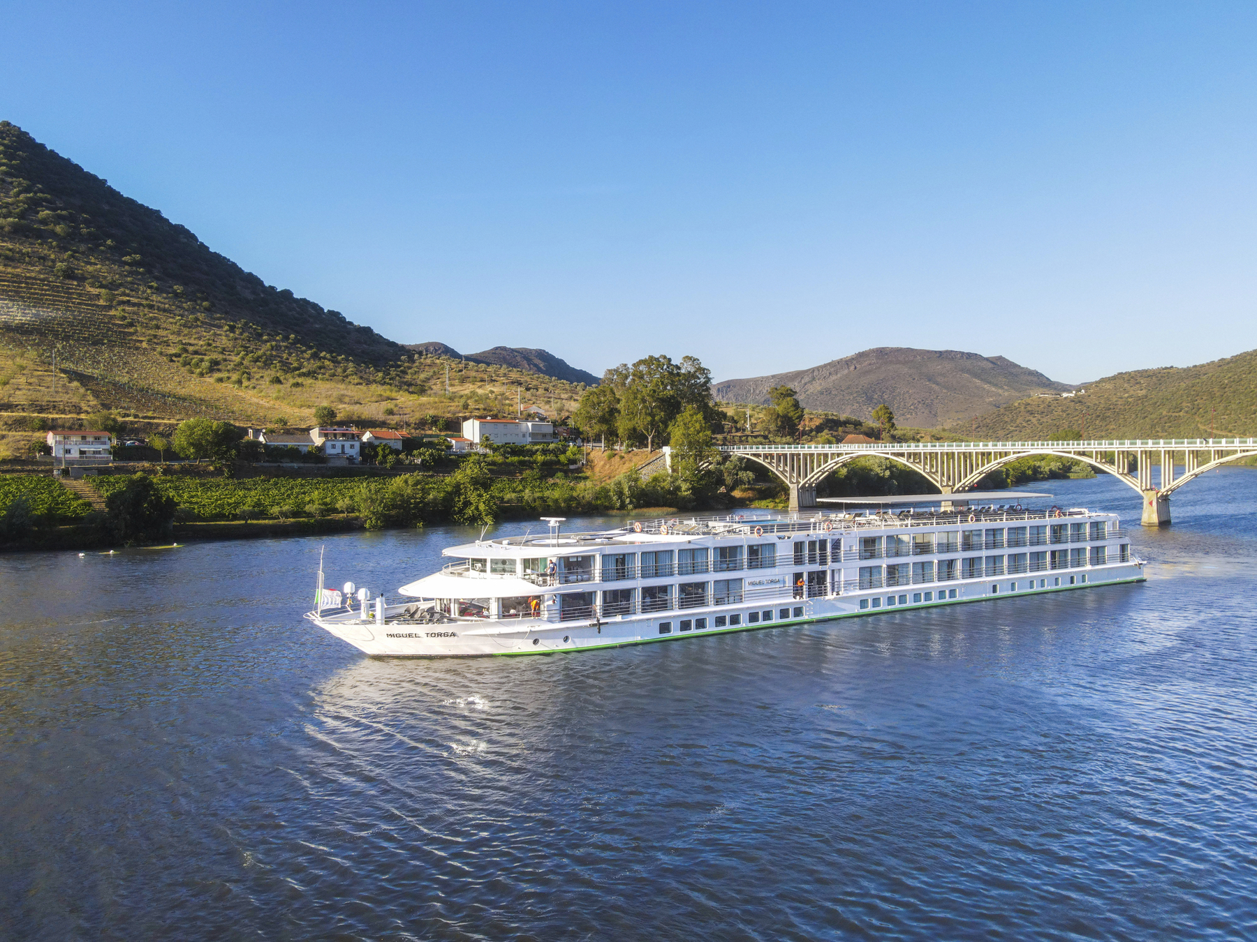 Das Interieur der MS Miguel Torga stellt die berühmten Weine und die Architektur Portos in den Mittelpunkt. Die Kombination aus bordeauxroter Farbe, hellem Holz und schwarzen Stahlelemente erinnert an den Portwein und seine Weinfässer. Das 2017 gebaute Schiff der 5-Anker-Kategorie bietet viel Platz auf den 3 weitläufigen Decks, die mit einem Lift verbunden sind. Die Kabinen sind zwischen 11 und 14 qm groß und verfügen über große Panoramafenster, die während der Fahrt einen herrlichen Blick auf die Landschaft bieten. Auf dem Ober- und Mitteldeck befinden sich vier Suiten. Zwei davon verfügen über eine eigene Terrasse mit Liegestühlen. Alle Mahlzeiten während der Kreuzfahrt werden im Restaurant auf dem Hauptdeck serviert. Auf dem Mitteldeck sind der Salon und die Bar im vorderen Teil des Schiffes, wo sich auch eine Terrasse befindet. Das Sonnendeck ist mit einem Swimmingpool und Liegestühlen ausgestattet.
