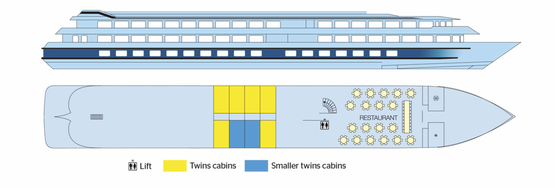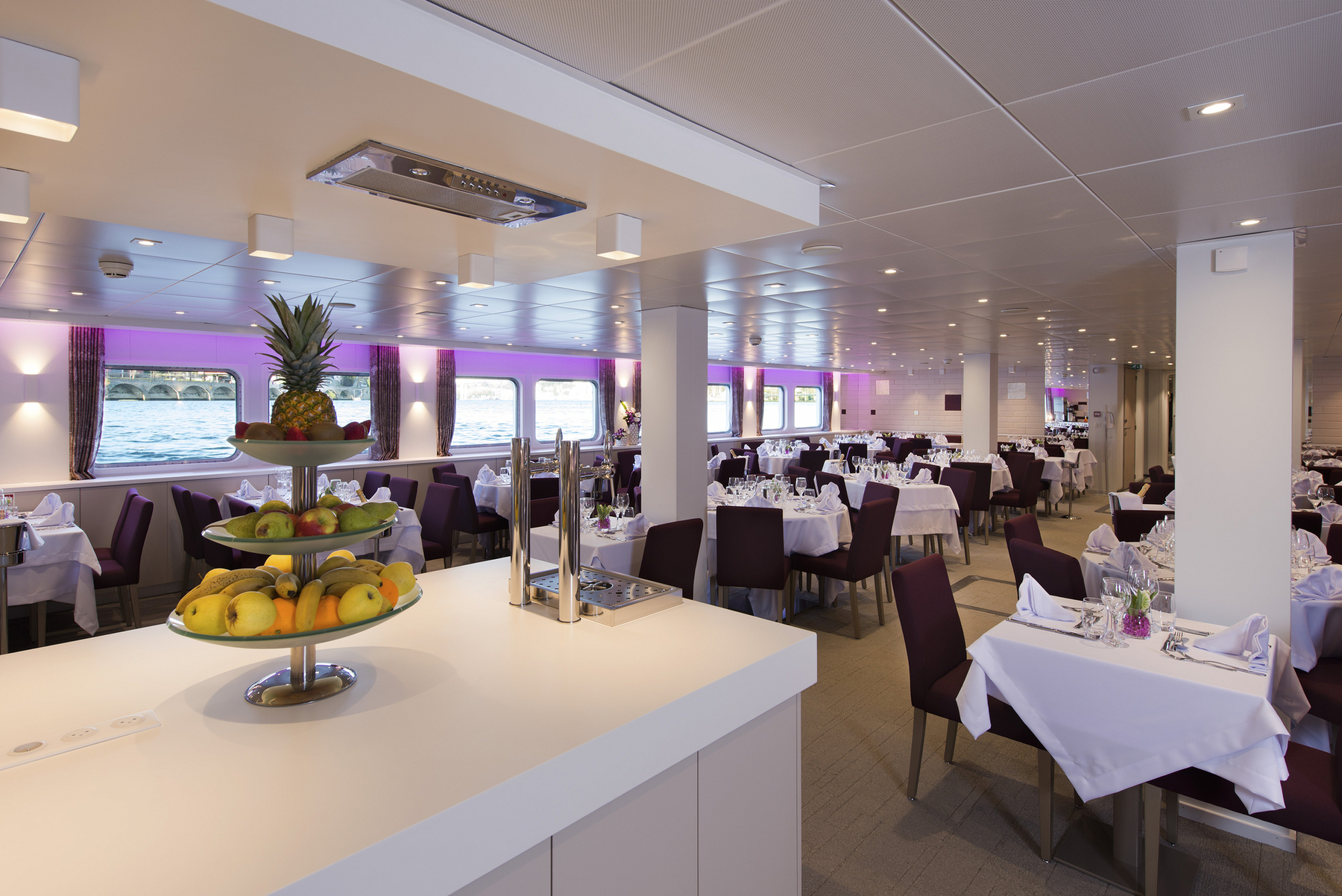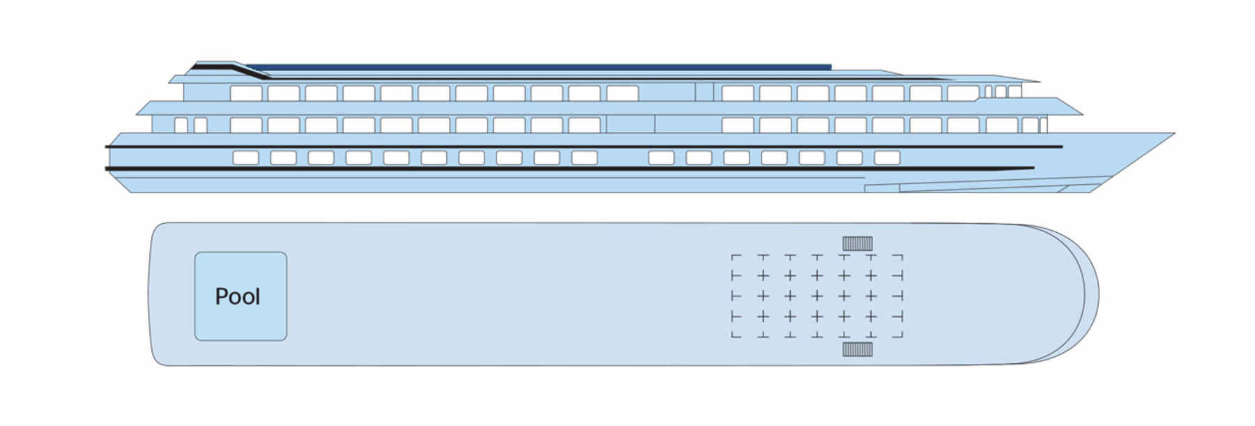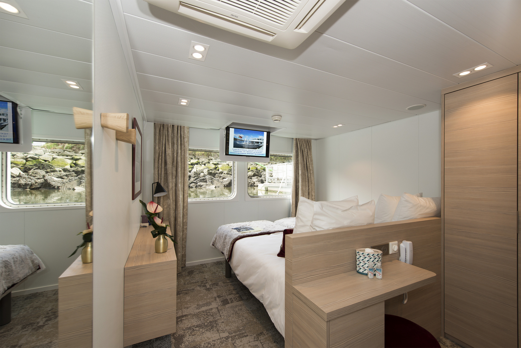 Das Interieur der MS Miguel Torga stellt die berühmten Weine und die Architektur Portos in den Mittelpunkt. Die Kombination aus bordeauxroter Farbe, hellem Holz und schwarzen Stahlelemente erinnert an den Portwein und seine Weinfässer. Das 2017 gebaute Schiff der 5-Anker-Kategorie bietet viel Platz auf den 3 weitläufigen Decks, die mit einem Lift verbunden sind. Die Kabinen sind zwischen 11 und 14 qm groß und verfügen über große Panoramafenster, die während der Fahrt einen herrlichen Blick auf die Landschaft bieten. Auf dem Ober- und Mitteldeck befinden sich vier Suiten. Zwei davon verfügen über eine eigene Terrasse mit Liegestühlen. Alle Mahlzeiten während der Kreuzfahrt werden im Restaurant auf dem Hauptdeck serviert. Auf dem Mitteldeck sind der Salon und die Bar im vorderen Teil des Schiffes, wo sich auch eine Terrasse befindet. Das Sonnendeck ist mit einem Swimmingpool und Liegestühlen ausgestattet.