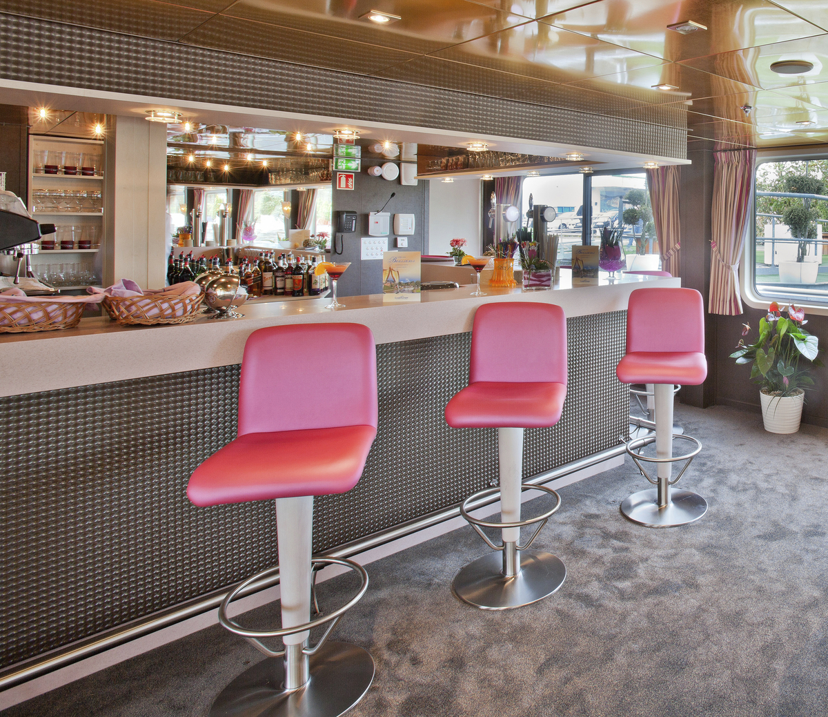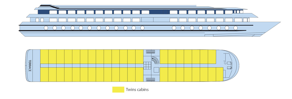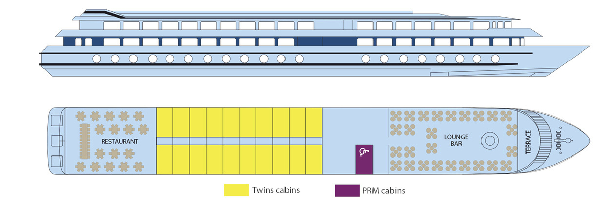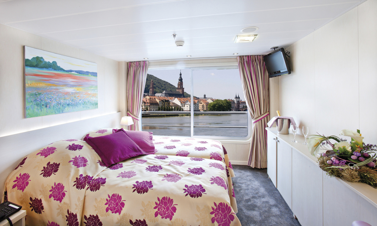 163884©CroisiEurope Zweibettkabine Oberdeck Die Zweibettkabinen auf dem Oberdeck verfügen über grosse Fenster mit französischem Balkon.Die Kabinen verfügen des Weiteren über:TVTelefon (nur interne Anrufe)Bad mit Dusche und WCHandtücherSafeKlimaanlage (unabhängig regulierbar)Elektrizität mit 220 VWi-Fi