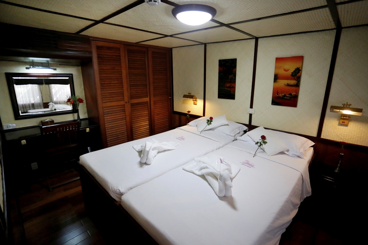 Die RV Indochine kreuzt auf dem Mekong, der durch Vietnam und Kambodscha fließt. Erleben Sie dieses Abenteuer voller Farben, Düfte und Geschmäcker. Das Schiff der 4-Anker-Kategorie ist im Kolonialstil eingerichtet und verfügt über 24 Kabinen, die auf zwei Decks verteilt sind. Alle Kabinen sind 16 qm groß und bieten den Gästen eine Vielzahl von Annehmlichkeiten und Komfort. Das Restaurant empfängt Sie in behaglichem Ambiente und mit herrlichem Ausblick durch die großen Panoramafenster. Das Sonnendeck mit Lounge und Bar ist der ideale Ort, um sich zu entspannen und die vorbeiziehende Landschaft auf sich wirken zu lassen.